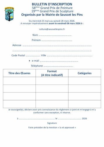 Inscription et réglement du Grand Prix de Peinture et de Sculpture